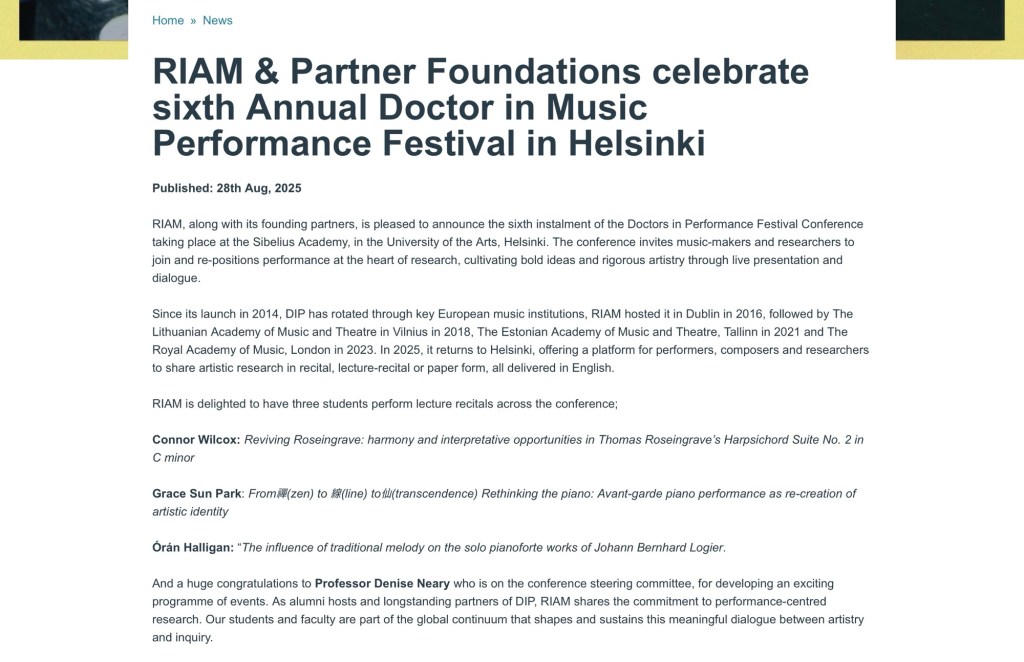 The trip to Helsinki, Finland was funded by The Royal Irish Academy of Music